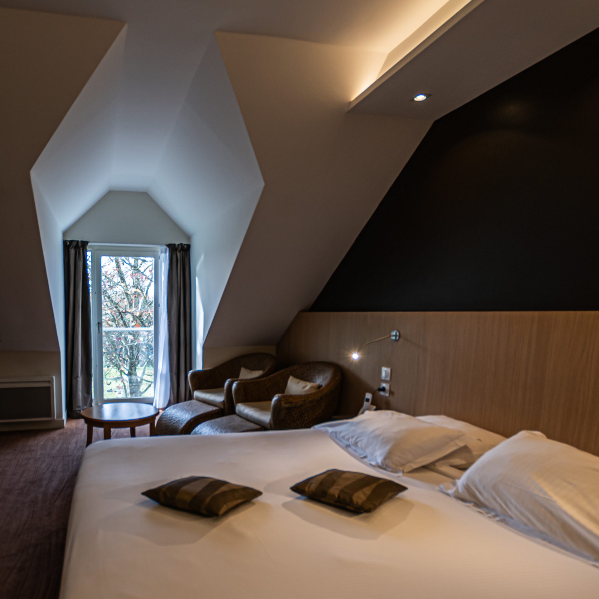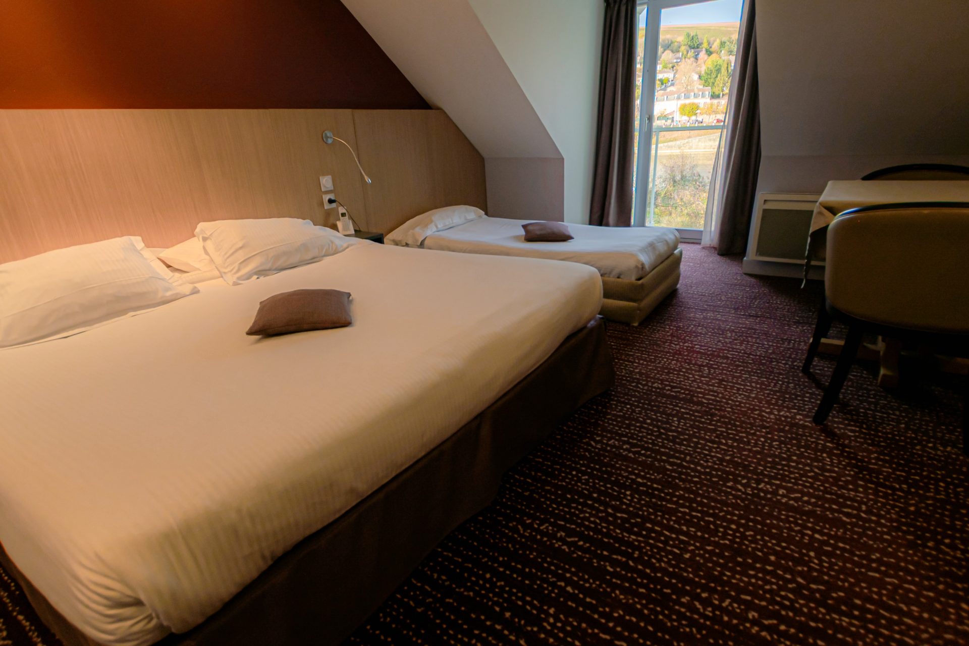 La chambre Confort vous accueille dans un espace généreux de 25 m² avec climatisation, idéal pour 1 ou 2 personnes. Elle offre une vue apaisante sur le parc, l’Yonne ou la ville, pour profiter pleinement de votre séjour.