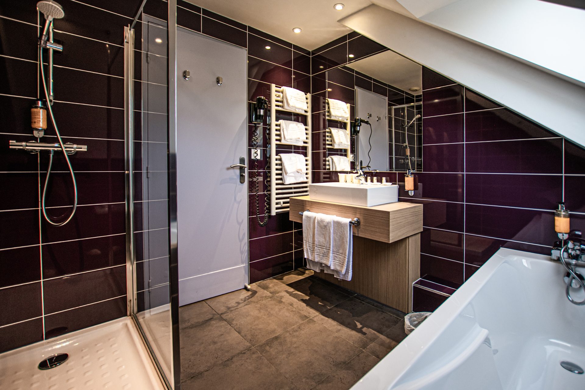 La salle de bain combine douche à l’italienne et baignoire, avec des toilettes séparées pour un confort optimal. La chambre peut accueillir un lit d’appoint supplémentaire pour un enfant (supplément 25 €), et constitue un choix parfait pour les familles ou les professionnels en déplacement.